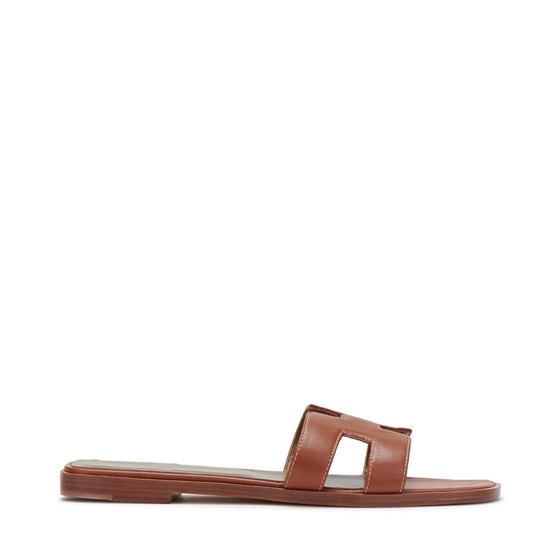 Mode d'été cuir de vache brun femmes sandales plates avec H creux haut